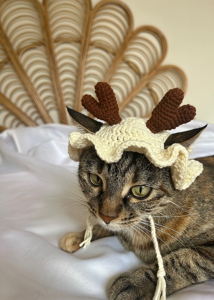 Boynuzlu evcil hayvan şapkasıdır.Ölçüleri dostunuza göre yapılmaktadır.#instakakuletoka#örgütoka#kedişapka#köpekşapka#kediaksesuar#hayvanaksesuarı