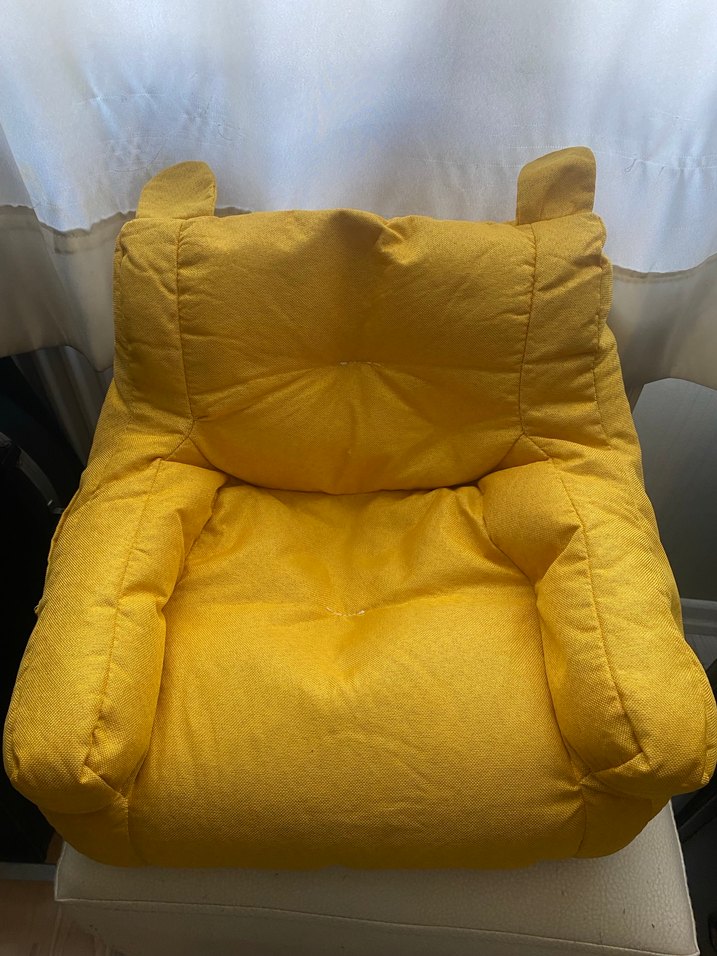 Parlak sarı renkte, kulak şeklinde detaylı kedi koltuğu, yurt dışından online olarak aldım, ama kedim hiç oturmadı malesef… İndirimi Kaçırmayın. Boyutu: 45 cm yükseklik 50cm standart boyutlarda. Tüm evcil hayvanlar için uygun. Ama rahat yatmasını isterseniz, yavru kediler için daha uygun tabi. Çok büyük köpeklere olmaz küçük cins köpeklere uygun.