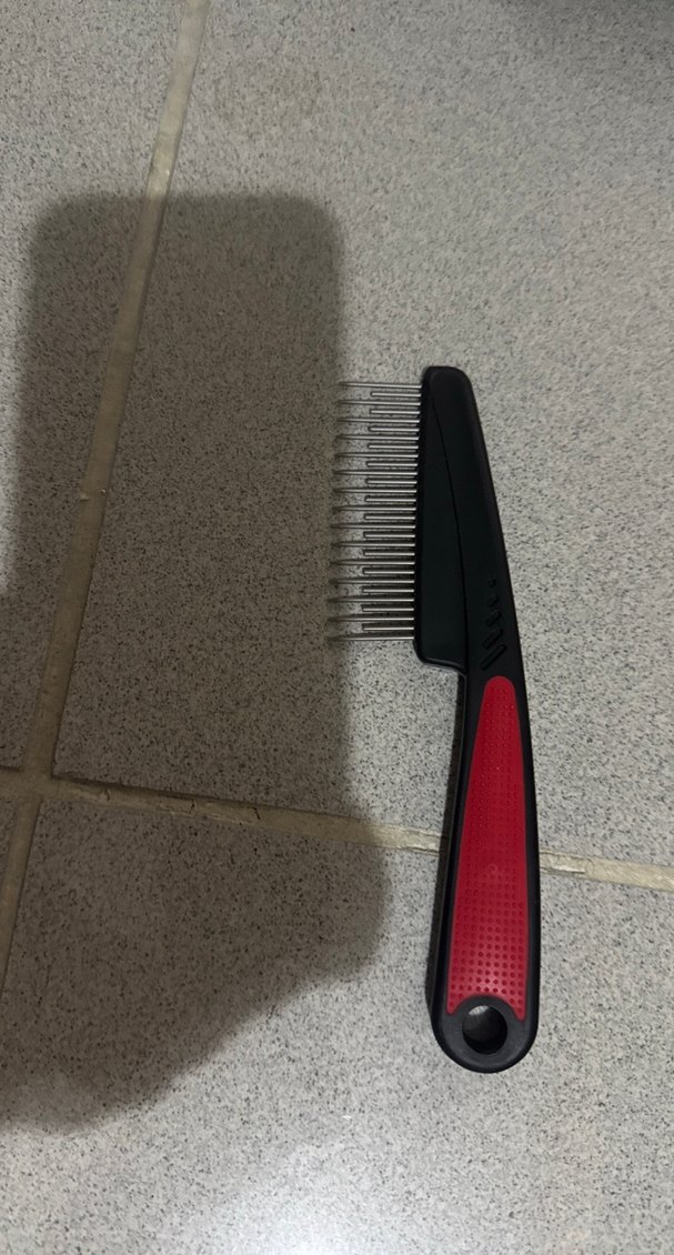 Gri renkte, ince metal dişlere ve rahat tutuşa sahip kedi tüy tarağı. Tüyleri açmak ve dökülen tüyleri temizlemek için uygundur. İki ürün birlikte