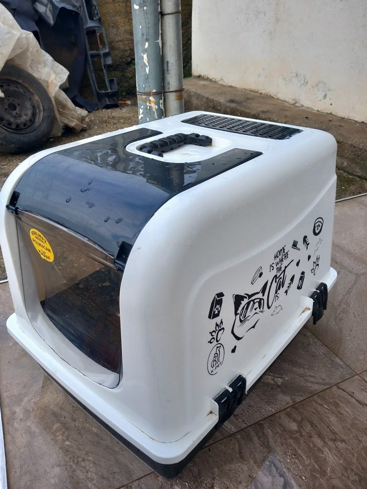Kediler için kapaklı taşıma ve tuvalet kutusu