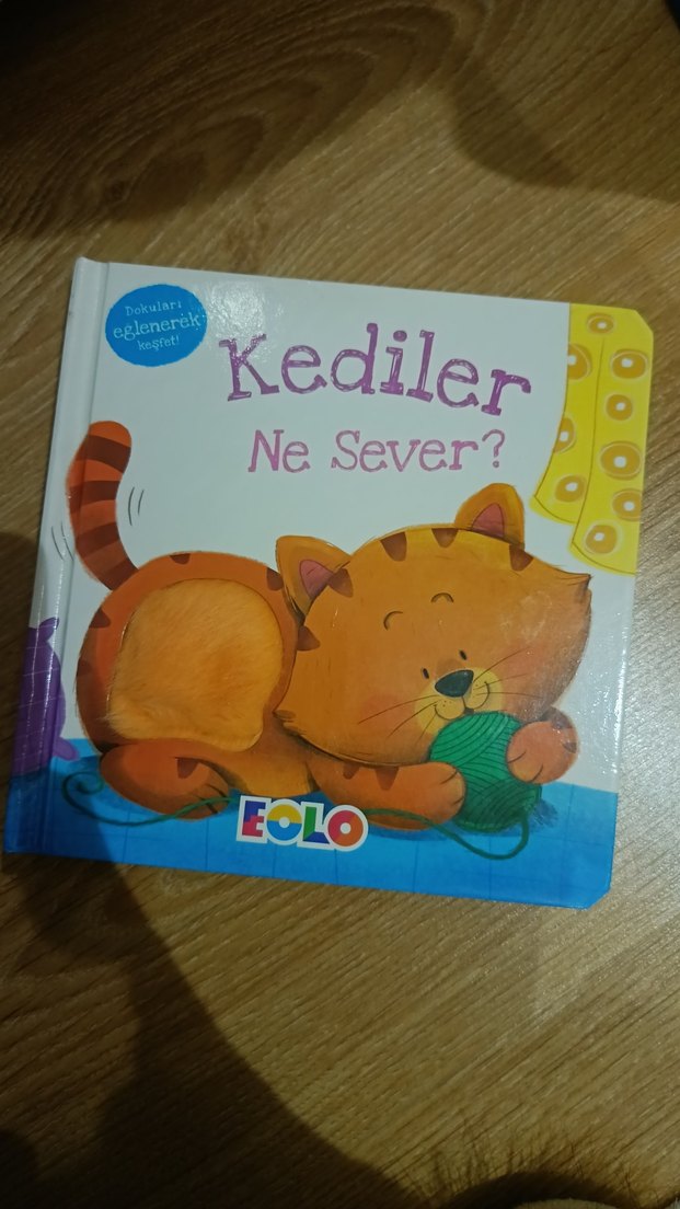 Kediler Ne Sever? adlı çocuk kitabı, eğlenceli kedi çizimleri ve interaktif özelliklerle öğrenmeyi destekler. sıfır ayarında