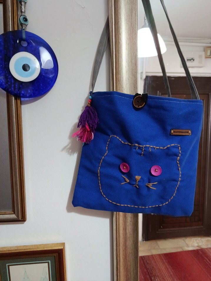 Mavi tekstil çanta, renkli nakış detayları ve püskül ile bohem ve retro tarzı yansıtıyor. Günlük kullanıma uygun, minimalist dokunuşlu. el yapımı astarlı çanta... ölçüler fotoğraflarda.. fiyatı çok uygun.. 2 kahve parasına el yapımı astarlı çantanız olsun.. standımdada sattığım için elimde kalmıyor.. tek tır.. benzerleri var. aynısı yok. astarlıdır.. sevgiyle kullanılsın ilanlarımda çeşitlerine bakmayı unutmayııııın