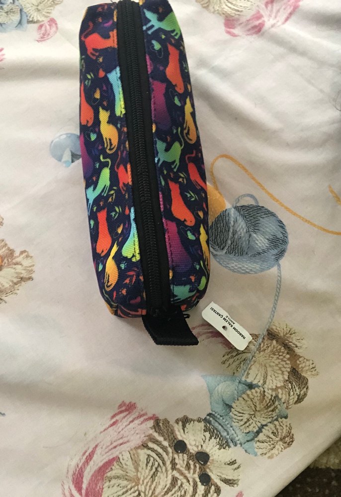 Kedili makyaj çantası hiç kullanmadım zaten etiketi üstünde yine tarzım değiştiği için satıyorum atiklerin yarısını köpeğim yemişti bende kestim