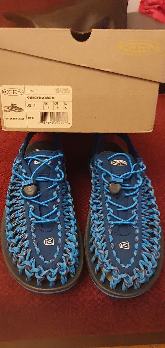KEEN markasına ait erkekler için mavi renkli, renkli bağcıklar, athleisure ve sokak modasına uygun.