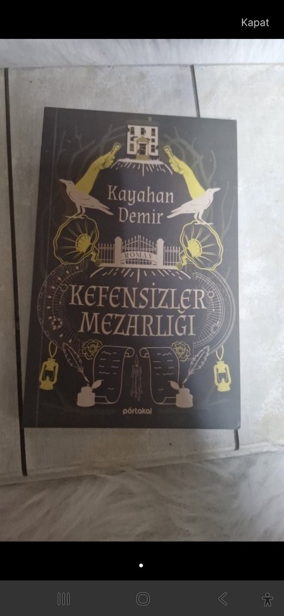 Kayahan Demir'in Kefensizler Mezarlığı adlı romanı, Portakal yayınevinden. Kapakta hikayeyle ilgili sembolik çizimler yer alıyor.