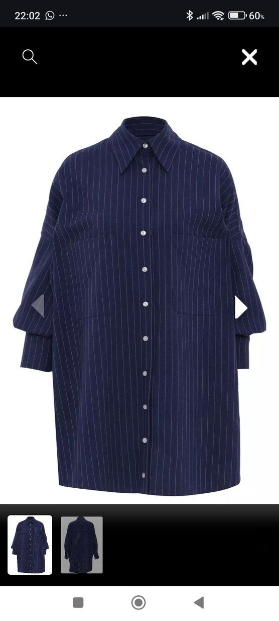 Lacivert renkli kadın gömlek, düğmeli ön ve kesimli yaka detayına sahiptir. ben elbise olarak kullandım kemerle över siz bol kesim 38-40 bedene kadar olur. Sadece 2 kere kullanıldı