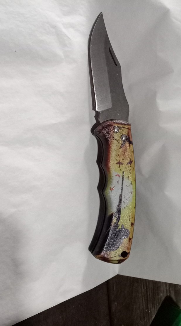 Çok renkli sapı ve dayanıklı bıçağı olan katlanır bıçak, ergonomik tutuş sağlar.