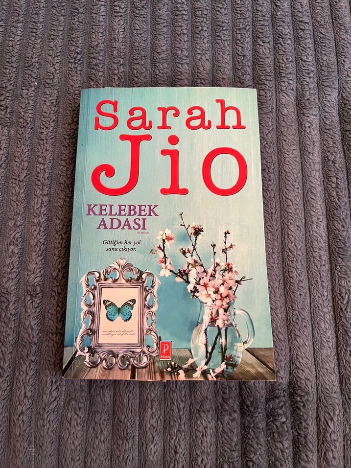Sarah Jio'nun Kelebek Adası romanı, kapakta zarif bir kelebek temasıyla dönüşüm ve umudu simgeliyor.