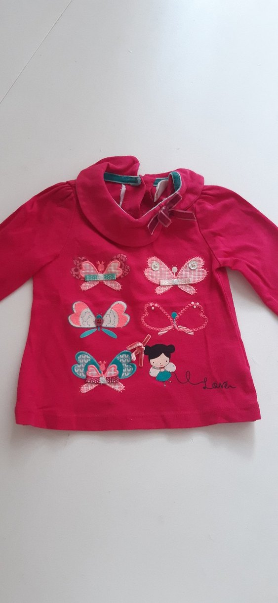 Pembe renkli, uzun kollu kız sweatshirtü, bisiklet yaka ve renkli kelebek baskıları ile tasarlanmıştır. Yumuşak ve sıcak kumaştan, düğme detaylı ve rahat bol kesimlidir.