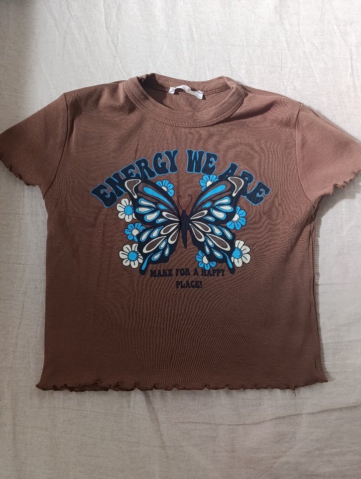 Kelebek Baskılı Kahverengi Tişört