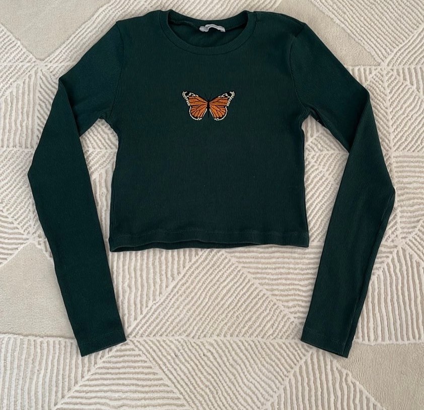 Kelebek Baskılı Uzun Kollu Kız Tişörtü