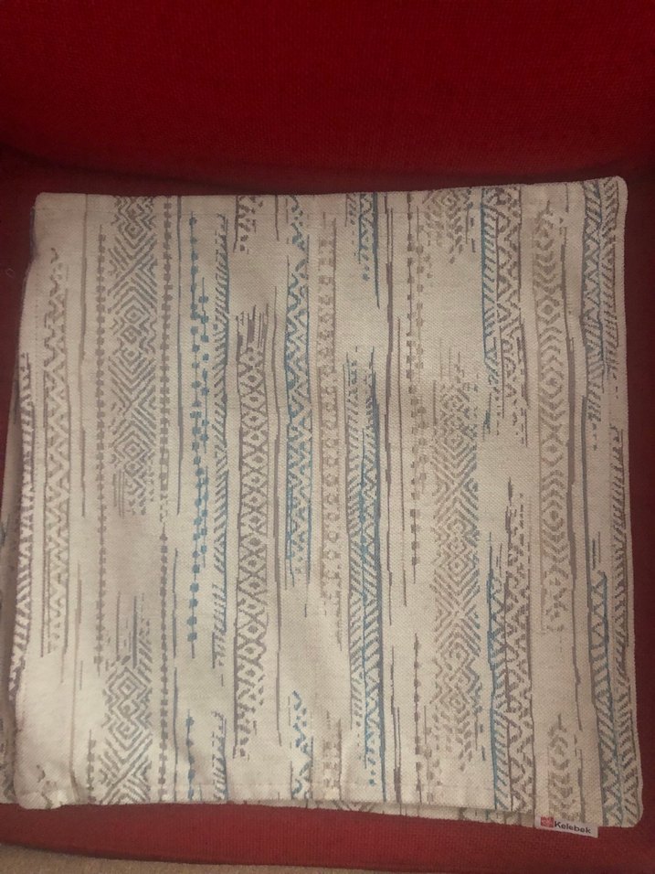 Bej renkte, gri bohem desenli yumuşak dokulu yastık kılıfı, mekana sanatsal bir hava katar. Sorunsuzdur.