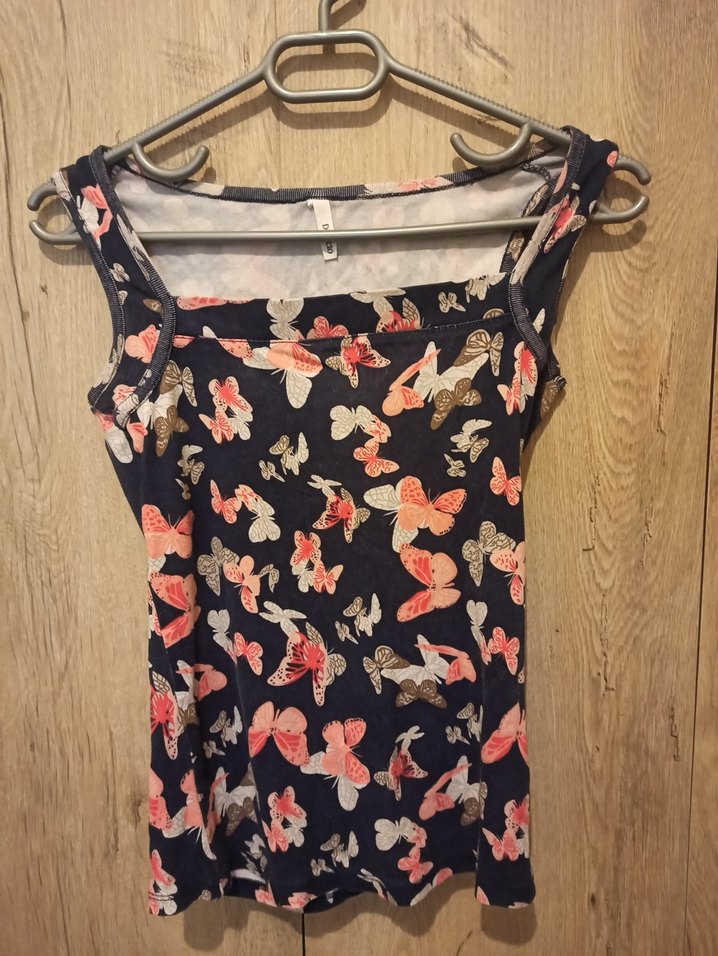 Kelebek desenli, kemerli, askısız ve kolsuz bluz. Normal boy ve vücuda oturan kesime sahiptir. Günlük kullanım için uygundur.