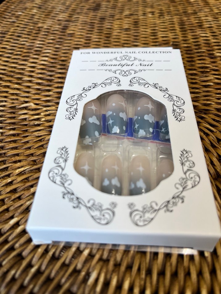 Kelebek desenli koyu renk beyaz tırnak süsleri, tırnaklarınızı süslemek için kutuda sunulmuştur. 24 adet tırnak 24 adet yapıştırıcı bir adet törpü