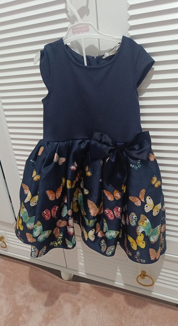 Kelebek Desenli Kız Çocuk Elbise