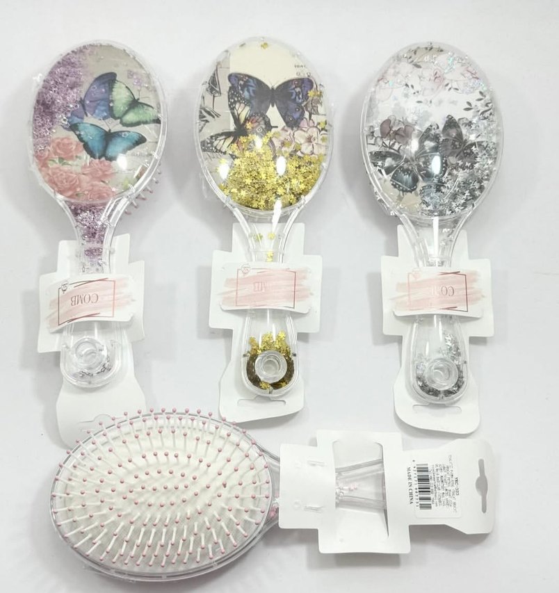 Kelebek Desenli Sıvı Dolgulu Saç Fırçası