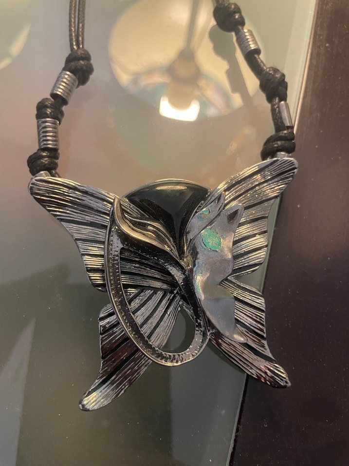 Kelebek Desenli Siyah Bohem Kadın Kolye