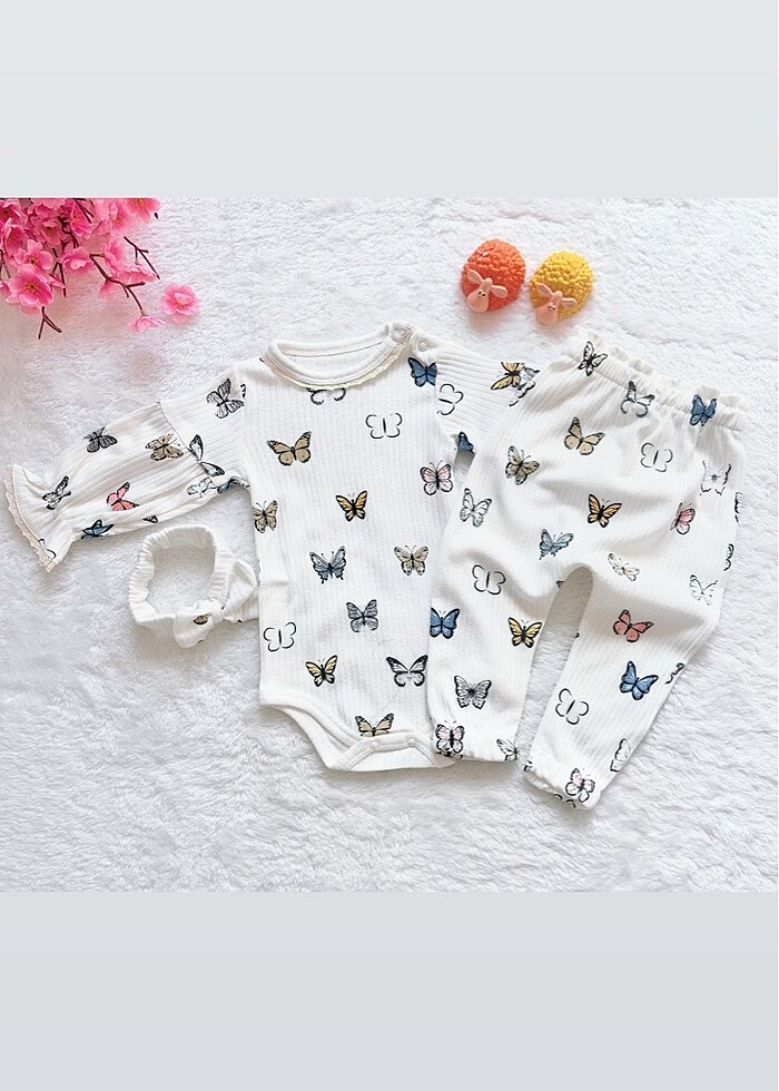 Kelebek desenli zıbınlı 3lü bebek takımı
