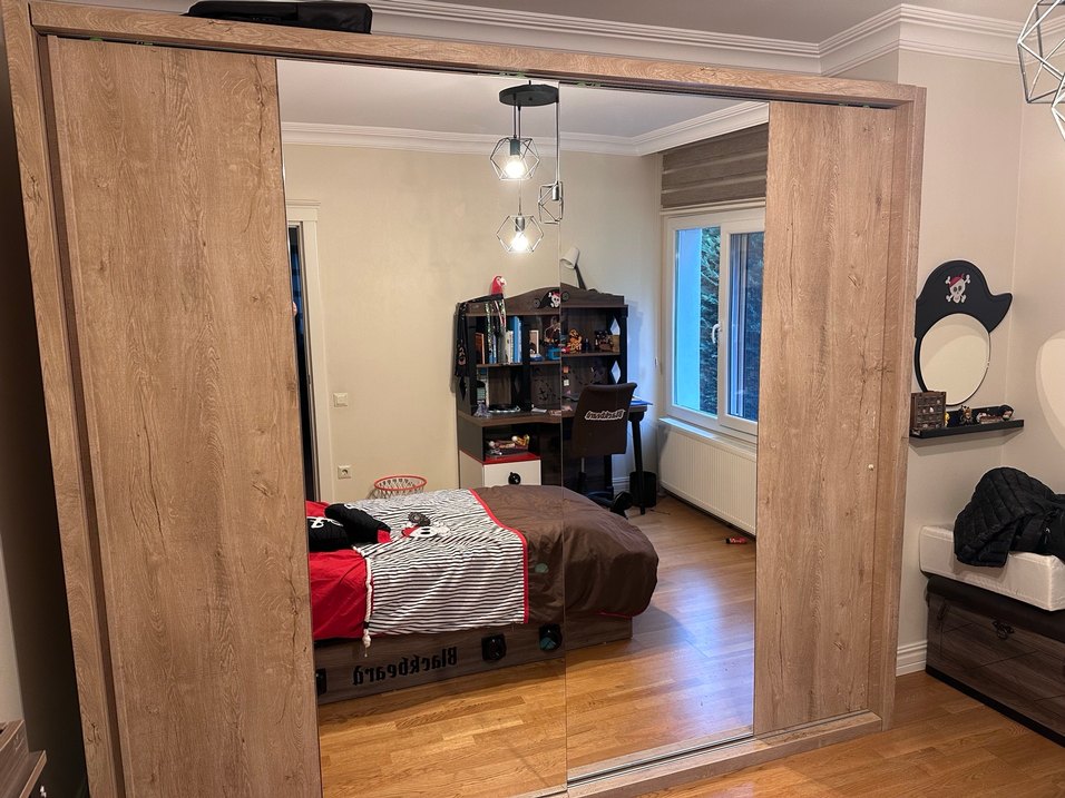 Koyu kahverengi kayar kapaklıdır. 1 çıta eksiktir. görselde görünüyor.
