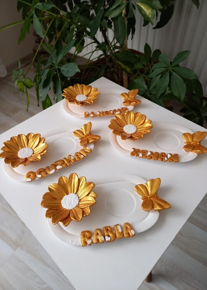 Ürünlerimiz birinci kalite taş tozundan imal edilmis olup iki kat boya ve üç kat vernik işlemi uygulanır el emegidir istenilen renk yapılır isim yazılır belirtilen fiyat takım fiyati degildir adet fiyatıdır (kelebek model sunum tabagi ve lokumluk isim dahil bir adettir)