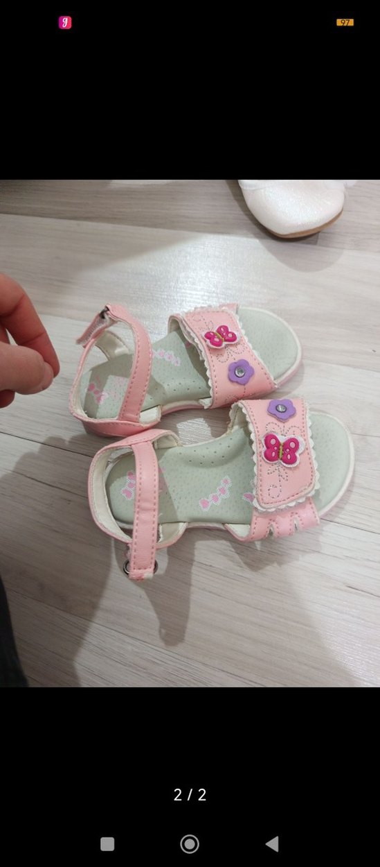 Pembe kız çocuk sandalet, tokalı ve kelebek ile çiçek nakışlı, yumuşak kauçuk malzemeden üretilmiştir. Rahat ve günlük kullanıma uygun.