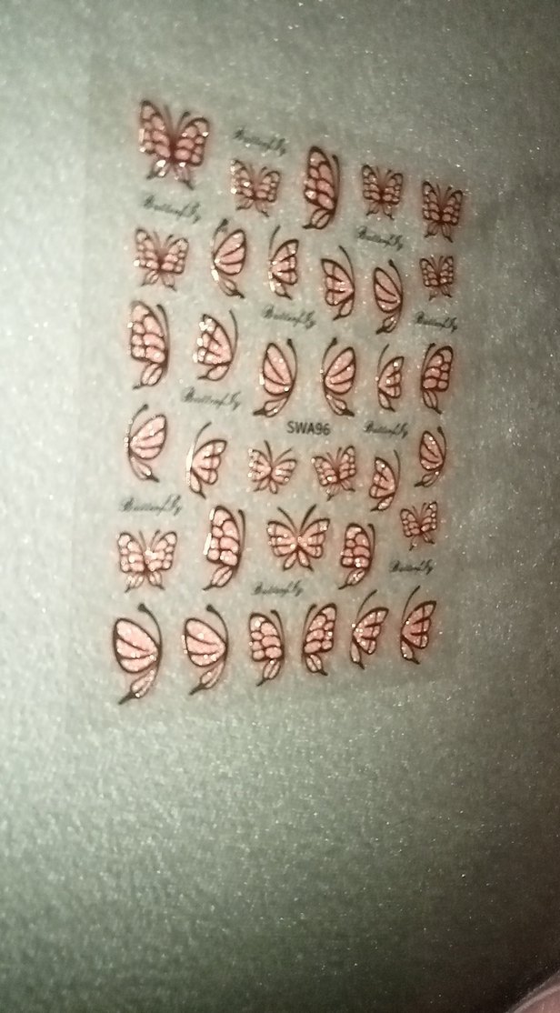Farklı boyutlarda açık kahverengi kelebek şeklinde tırnak süslemeleri. Tırnaklara zarif bir dokunuş katar.