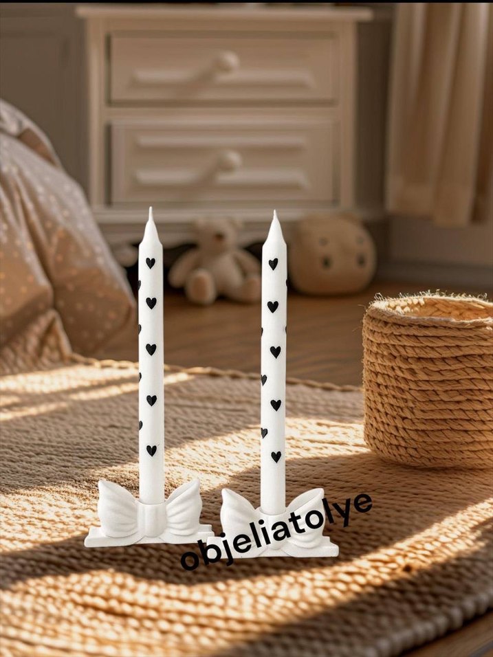 Kelebekli Beyaz Mumluk ve Kalp Desenli Mum