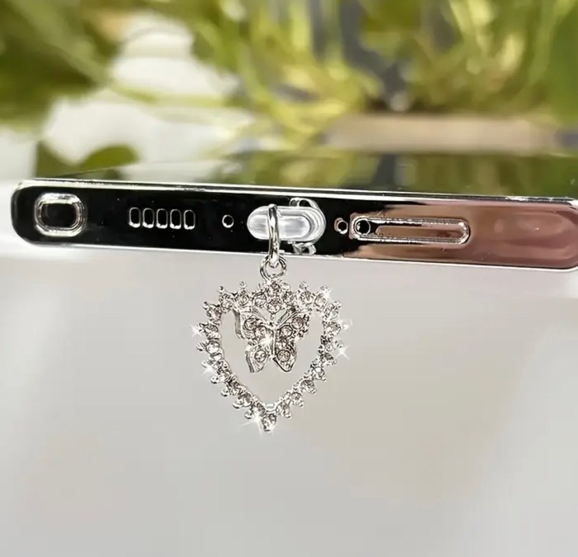 Telefon şarj kısmı toz koruyucusu taşlı kalpli kelebekli toz koruyucu. Sıfır ürün. Iphone 5-14 uygun
