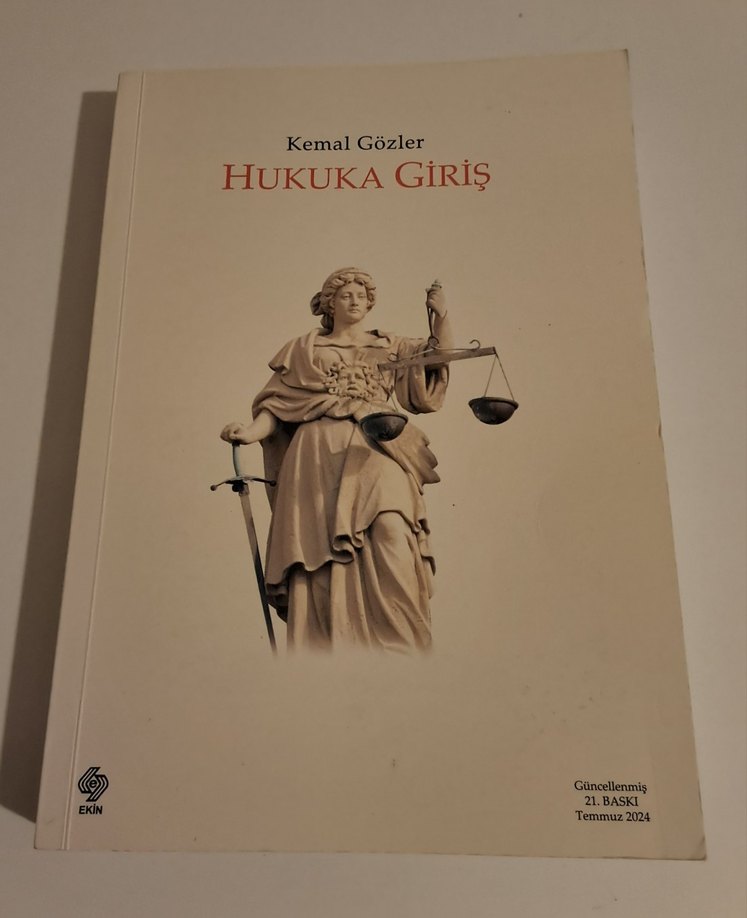 Kemal Gözler'in "Hukuka Giriş" kitabı, Temmuz 2024 güncellemeli temel hukuk kavramlarını içerir. Kapakta Adalet Heykeli yer alır. ⚖️ KİTABIN İÇERİSİNDE HİÇBİR YAZI ÇİZGİ YOK.SIFIRDIR.