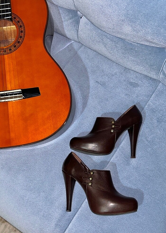 Kemal Tanca markasına ait hakiki deriden yapılmış topuklu ayakkabı. 37 numara. "Acı kahve" renginde, yanlarında detaylar var. Çok şık duruyor.