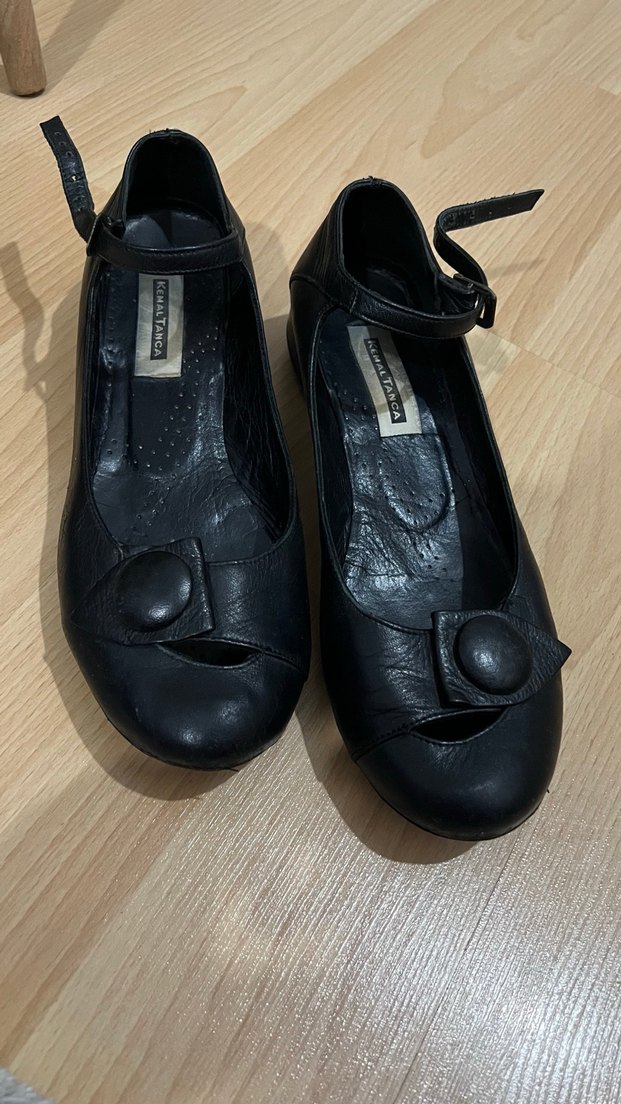 Kemal Tanca marka - Siyah kadın babet, hafif topuklu ve tokalı kayışlıdır. 38 beden.