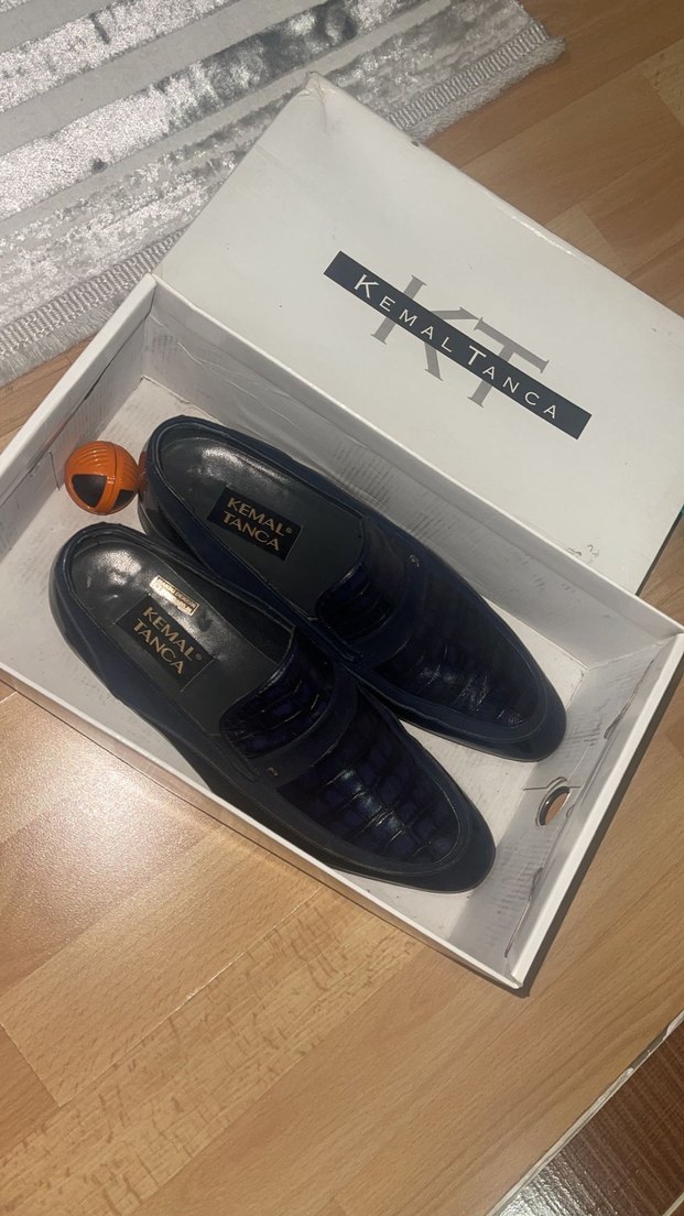 Kemal Tanca siyah yılan desenli erkek klasik ayakkabı, plise detaylı ve kauçuk tabanlıdır, günlük sokak kullanımı için uygundur.