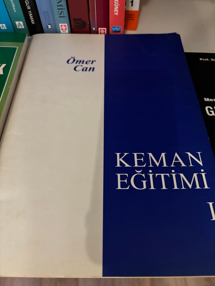 Ömer Can'ın 'Keman Eğitimi' adlı kitabı, keman eğitimi hakkında detaylı bilgiler sunar. Kapak sade mavi ve beyaz renktedir.