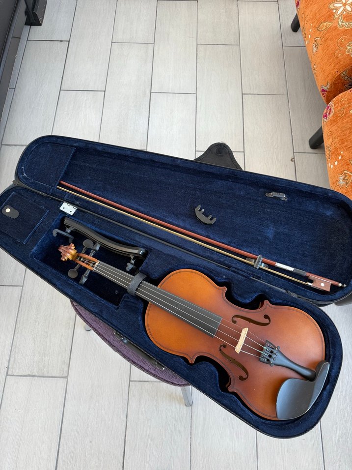 Koyu kahverengi pagannini 4/4 keman, yayı, susturucu, boyun aksesuarı ve koruyucu iç astarlı kutusu ile birlikte. Yanında Ömer can keman eğitimi kitabını da gönderiyorum