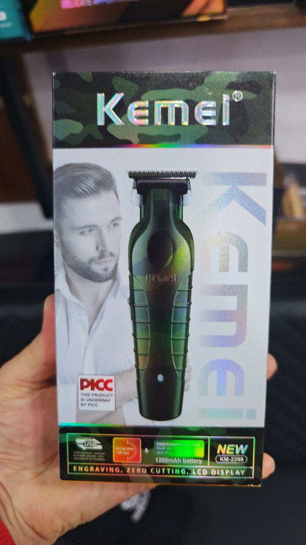 Kemei tıraş makinesi, kazıma ve sıfır kesim teknolojisi ile LCD ekrana sahiptir. 1200mAh bataryası vardır. Koyu canlı haki renktedir. ⚡