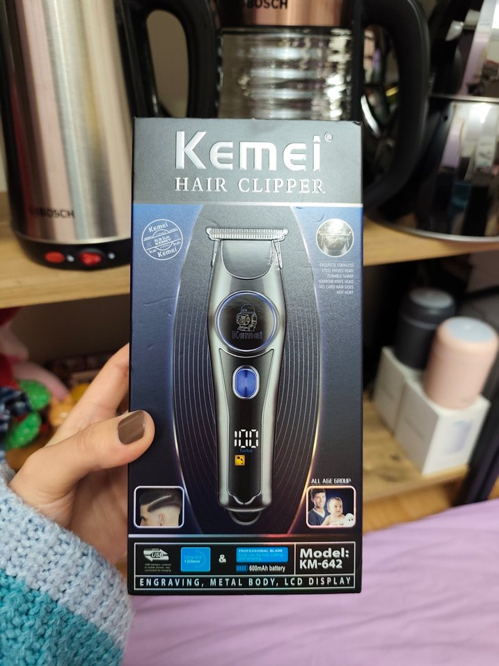 Kemei saç kesme makinesi metal gövdeye ve LCD ekrana sahiptir. Lityum batarya ile kablosuz kullanım sağlar. Tüm saç tipleri için uygundur. ✂️