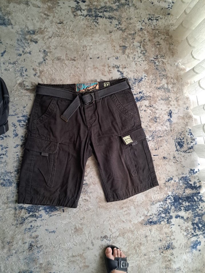 kemer detaylı, antrasit şort, bol kesim . Günlük sokak stili için uygun.