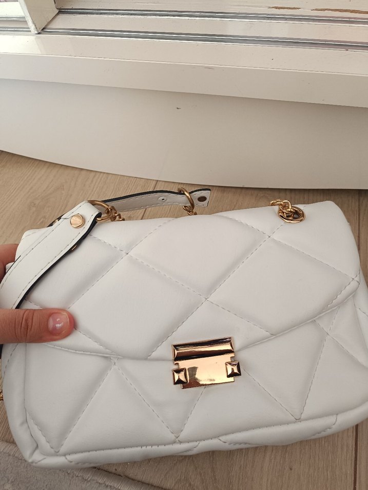 Kemer Detaylı Beyaz Deri Kadın Çanta