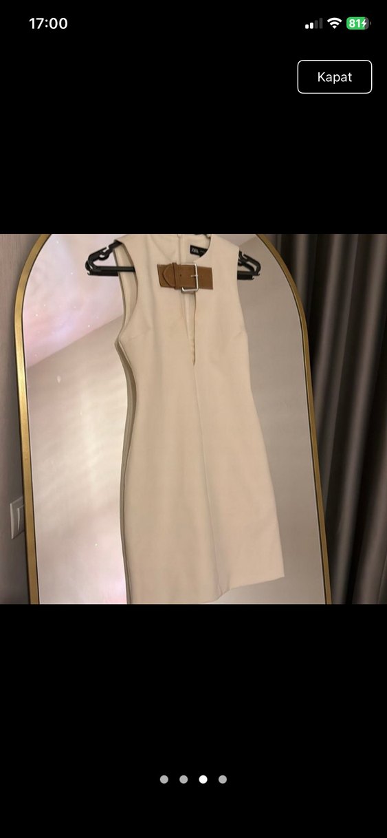 Kolsuz, V yaka beyaz elbise. Minimalist sokak stili için kemer detayı bulunur. Günlük kullanıma uygundur.