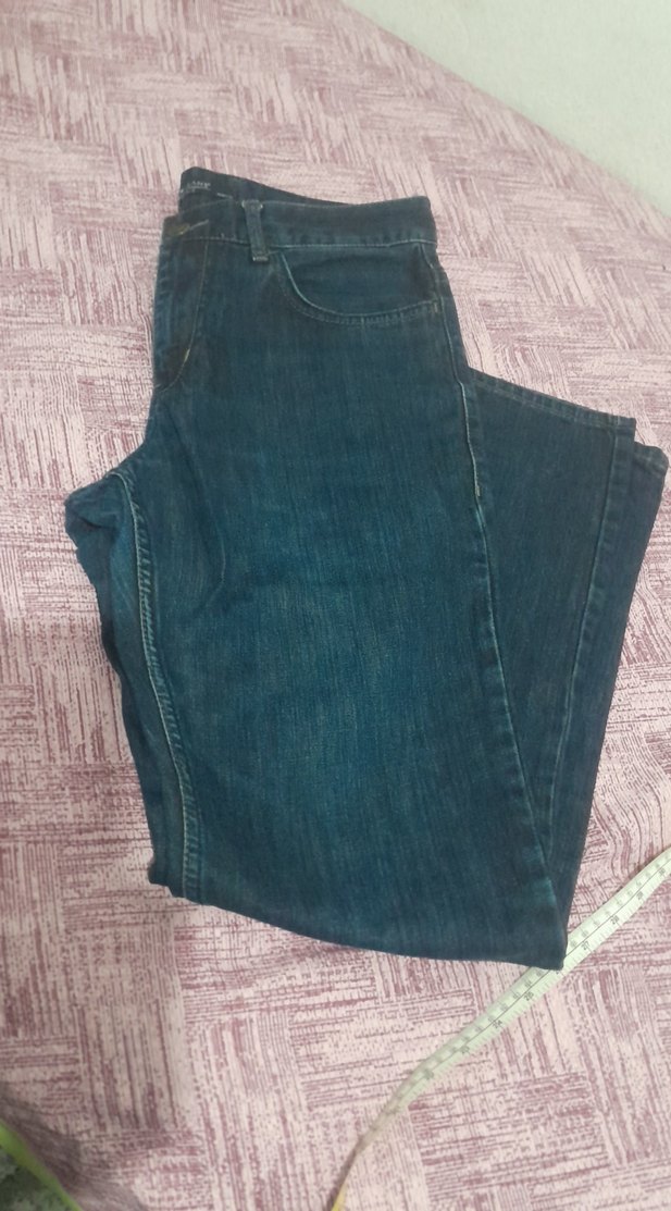 Kemer detaylı, normal kesim ve lacivert kot pantolon. Günlük rahat ve kullanışlı sokak stili için uygundur.