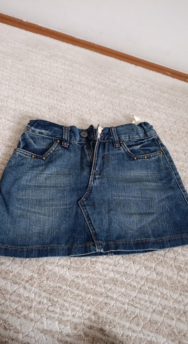 Mavi kot kumaştan, kemerli ve bol kesimli genç kız etek. Sokak modasına uygun sade ve cepli tasarım.