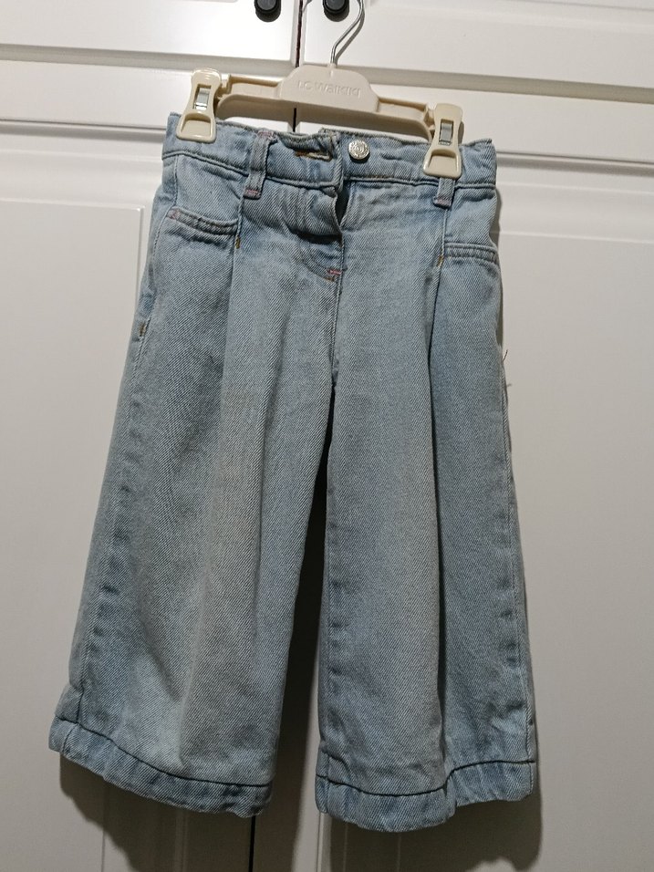 Kemer detaylı, geniş kesim, mavi kot kumaştan yapılmış kız çocuk pantolonu. Sade tasarımı ve rahat stiliyle günlük kullanıma uygundur.