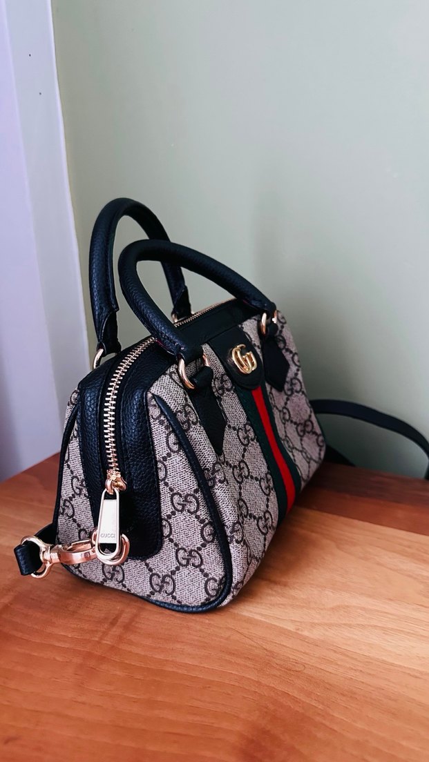 Kemer Detaylı Gri Baskılı Deri Kadın Çanta