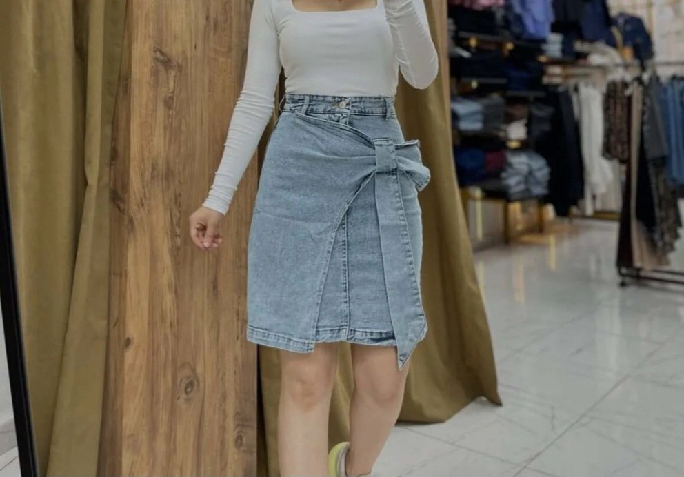 Kemer detaylı, belden oturan mavi kot denim midi etek, günlük sokak tarzı için uygun ve rahat bir görünüme sahiptir.