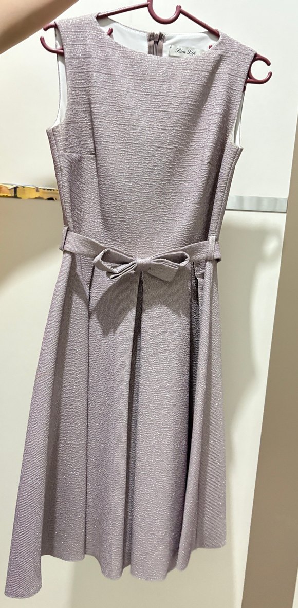 Kemer detaylı, kayık yaka ve kolsuz pembe elbise. Modern klasik tarzda, rahat kesim.