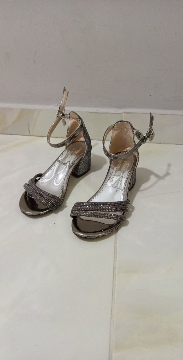 Kemer Detaylı Gri Yılan Desenli Kız Çocuk Topuklu Ayakkabı