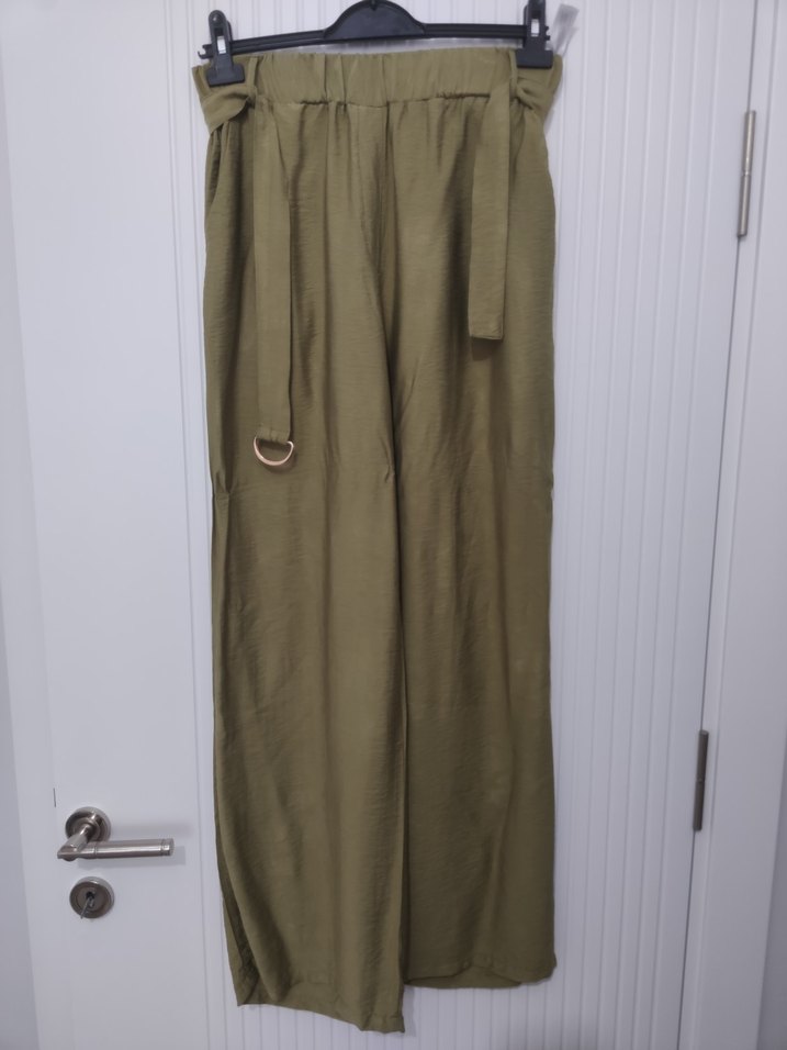 Kemer Detaylı Haki Kadın Keten Pantolon 40 Beden