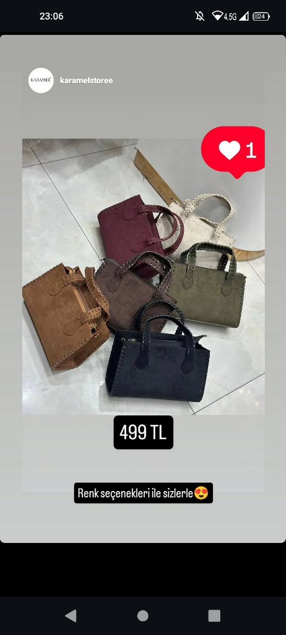 Kemer detaylı, koyu kahverengi süet kadın çantası. Trendy casual ve bohem sokak stili için uygun. Birden fazla renk seçeneği mevcut. Fiyat: 499 TL.