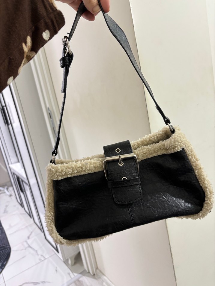 Kemer detaylı kayışı ve yumuşak kürk kenarları olan koyu kahverengi deri çanta, şık ve rahat kullanıma uygundur. Stradivarius muadili az kullanıldı temiz