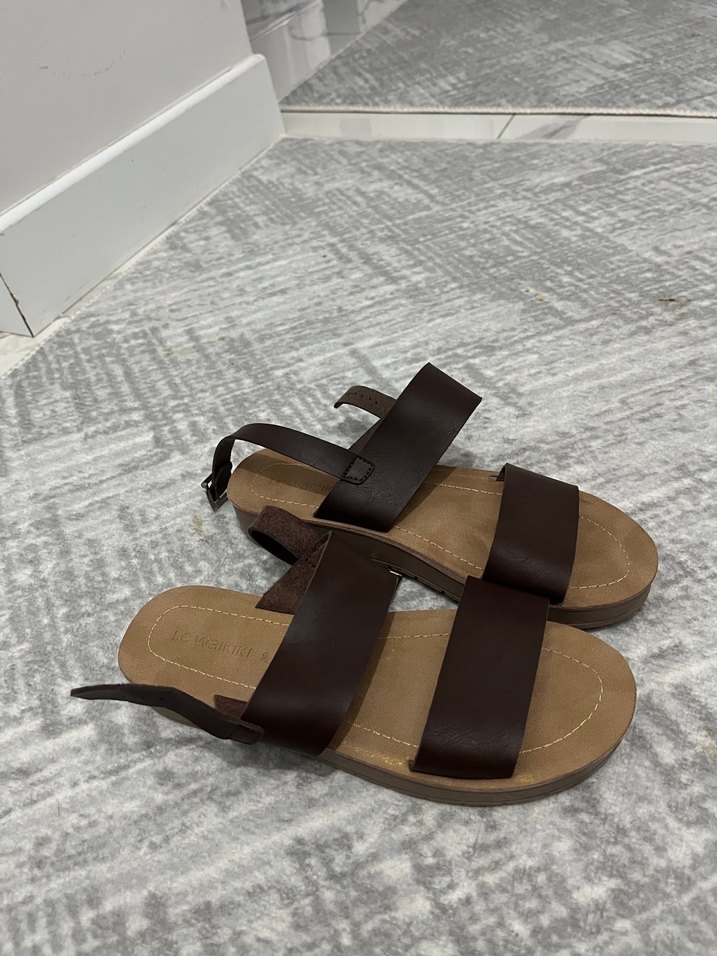 Kemer Detaylı Kahverengi Kadın Deri Sandalet